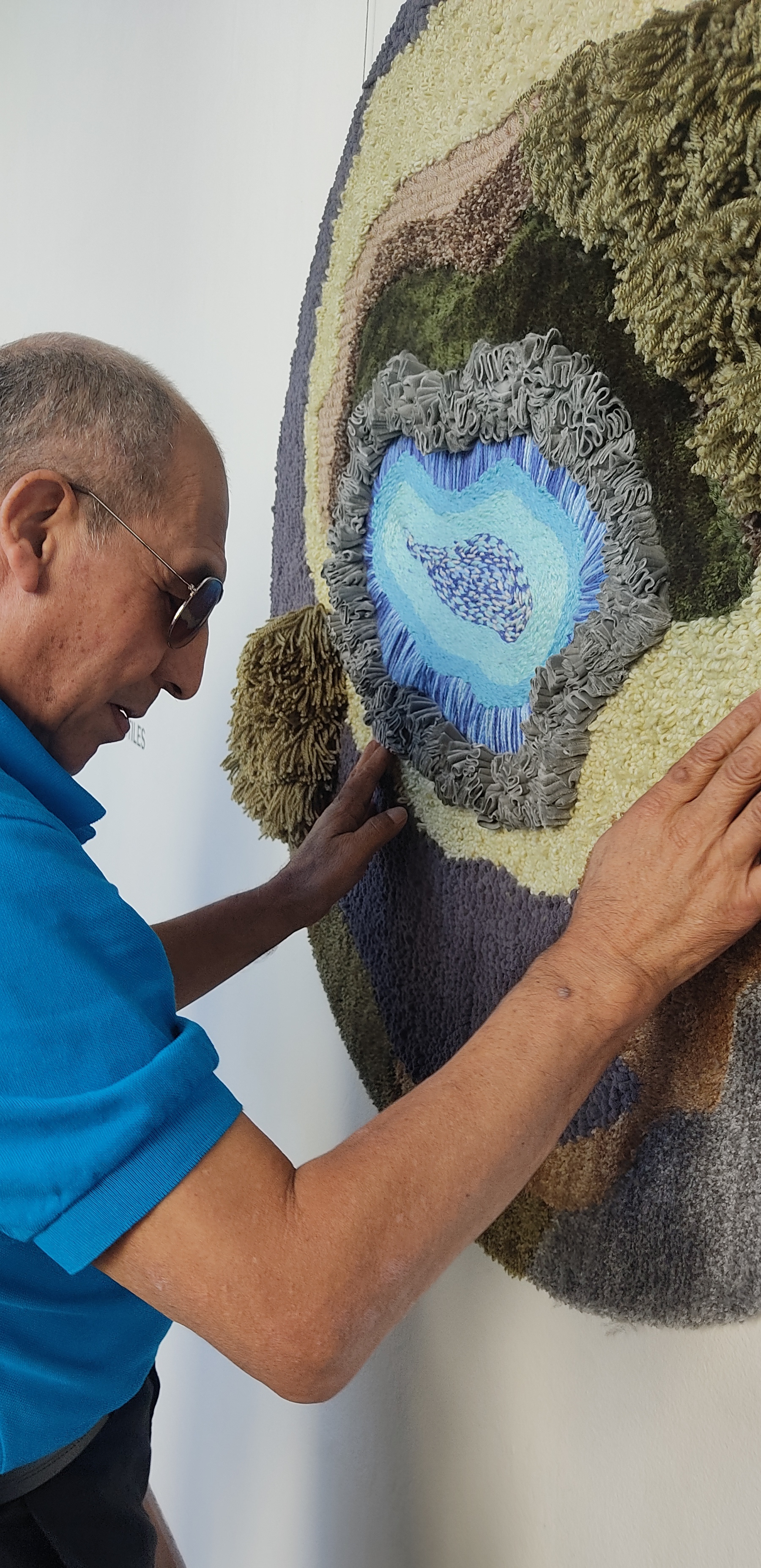 “Páramo” está compuesta por piezas textiles, realizadas en diferentes técnicas de bordado, inspiradas en experiencias, paisajes y microcosmos propios del páramo. A su vez, las piezas se encuentran acompañadas por activadores de audio con paisajes sonoros y narraciones audiovisuales que permiten ampliar la experiencia sensorial. Así esta exposición puede ser disfrutada por personas con y sin discapacidad visual.